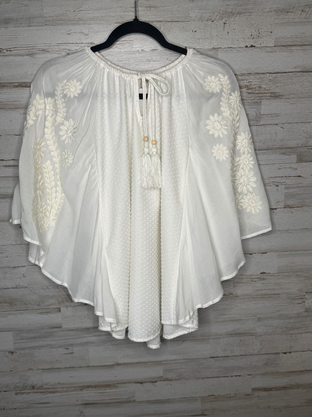 Home / Blouses / NEW MISS ME WHITE BLOUSE SHEER ARMS MED